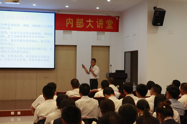 6月是全國安全生產活動月,今年的主題是“加強安全法治,保障安全生產”。為讓廣大員工充分認識到安全的重要性,公司舉行安全生產專題培訓。6月17日晚7時,由華城項目部經理景安濤為大家?guī)砹艘粓霭踩a專題培訓。