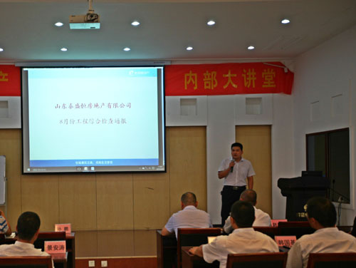 公司副總工程師徐總對檢查情況作了成績通報,并著重表揚了進步較大的天元905項目部(承建金泰華府1、2、3#樓)。